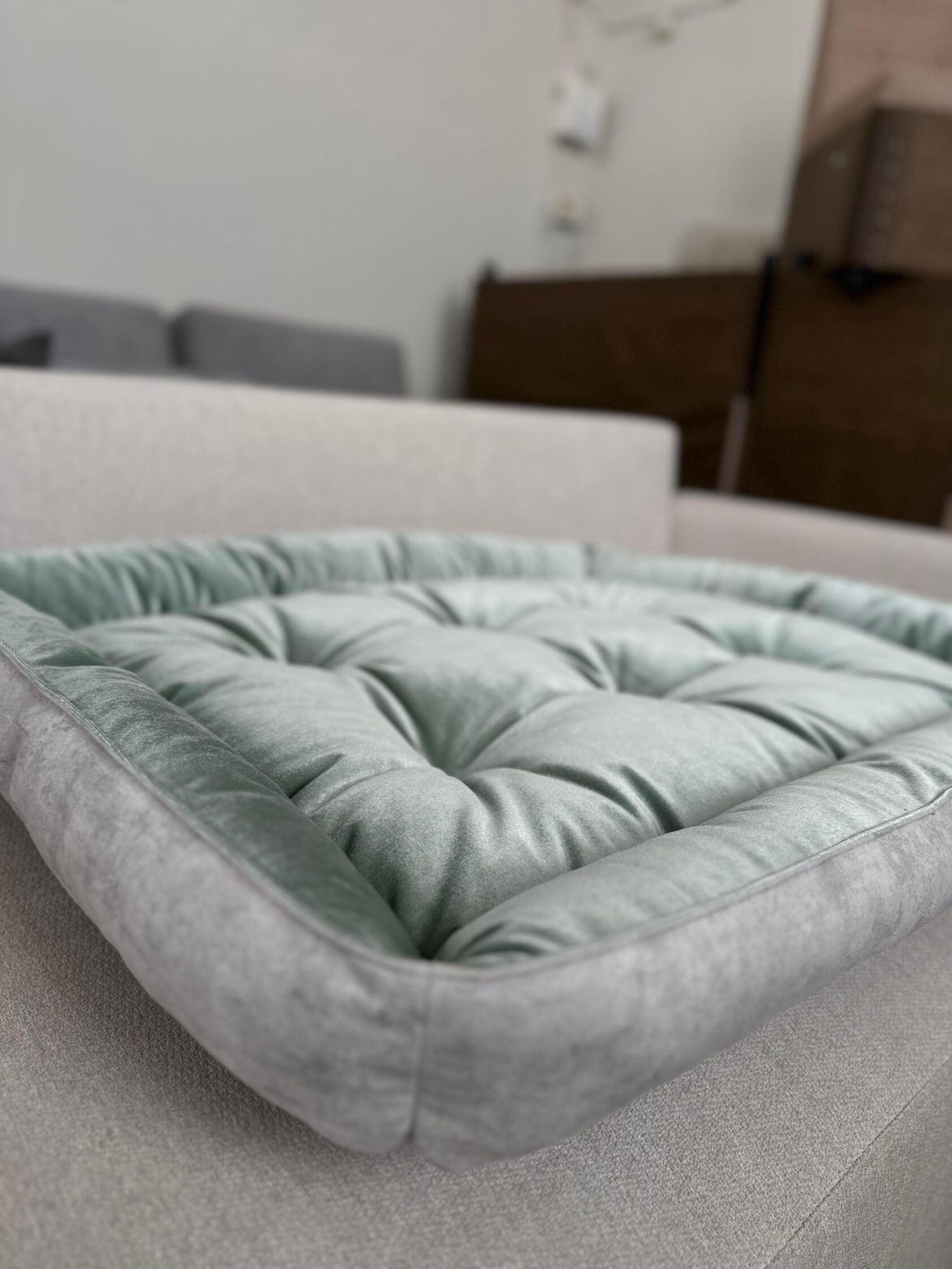 Размер лежанки с бортиком 57*57 спальное место 40*40 Лежанка из мебельной ткани высокого качества. Этот размер подойдёт собакам мелких и средних пород (йорк,чихуахуа,такса) и кошкам.