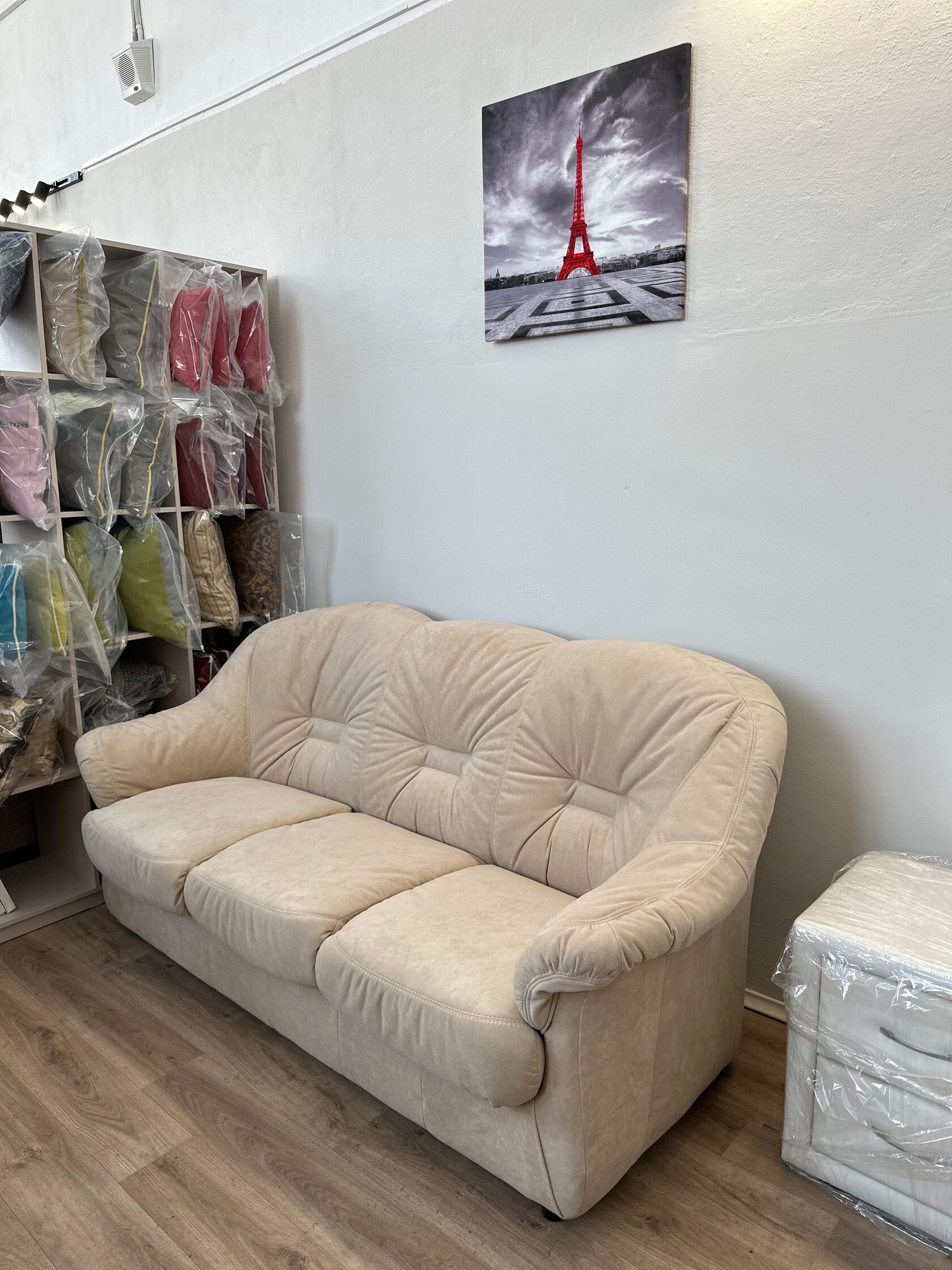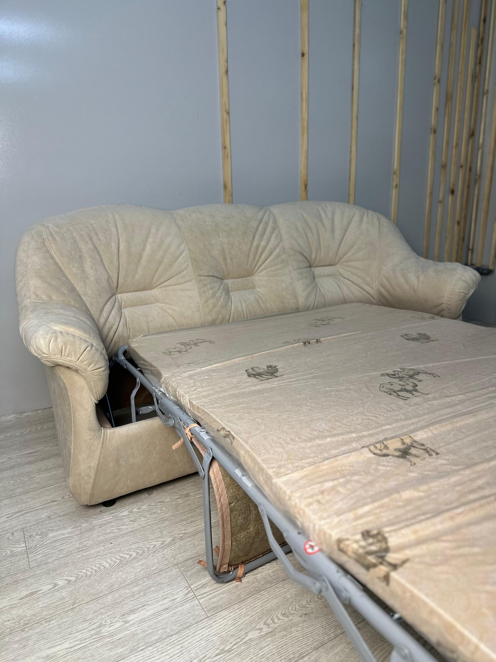 Диван со спальным местом. Механизм книжка. Возможно укомплектовать любыми подушками по желанию. Размеры габаритные: 74 см высота, 245 см ширина; 100 см глубина;
