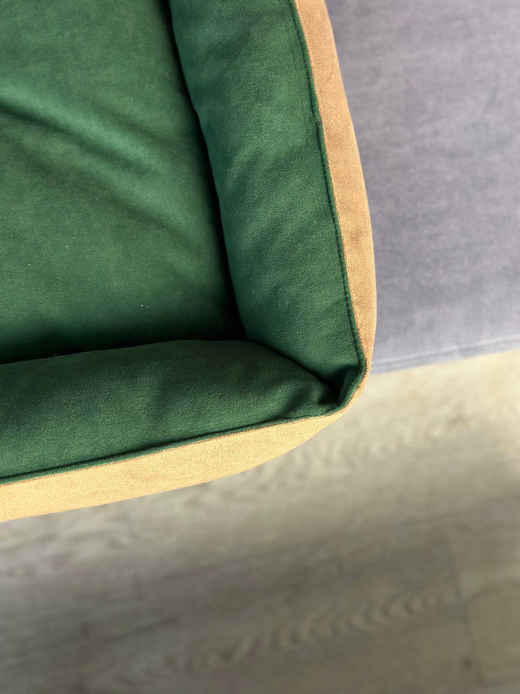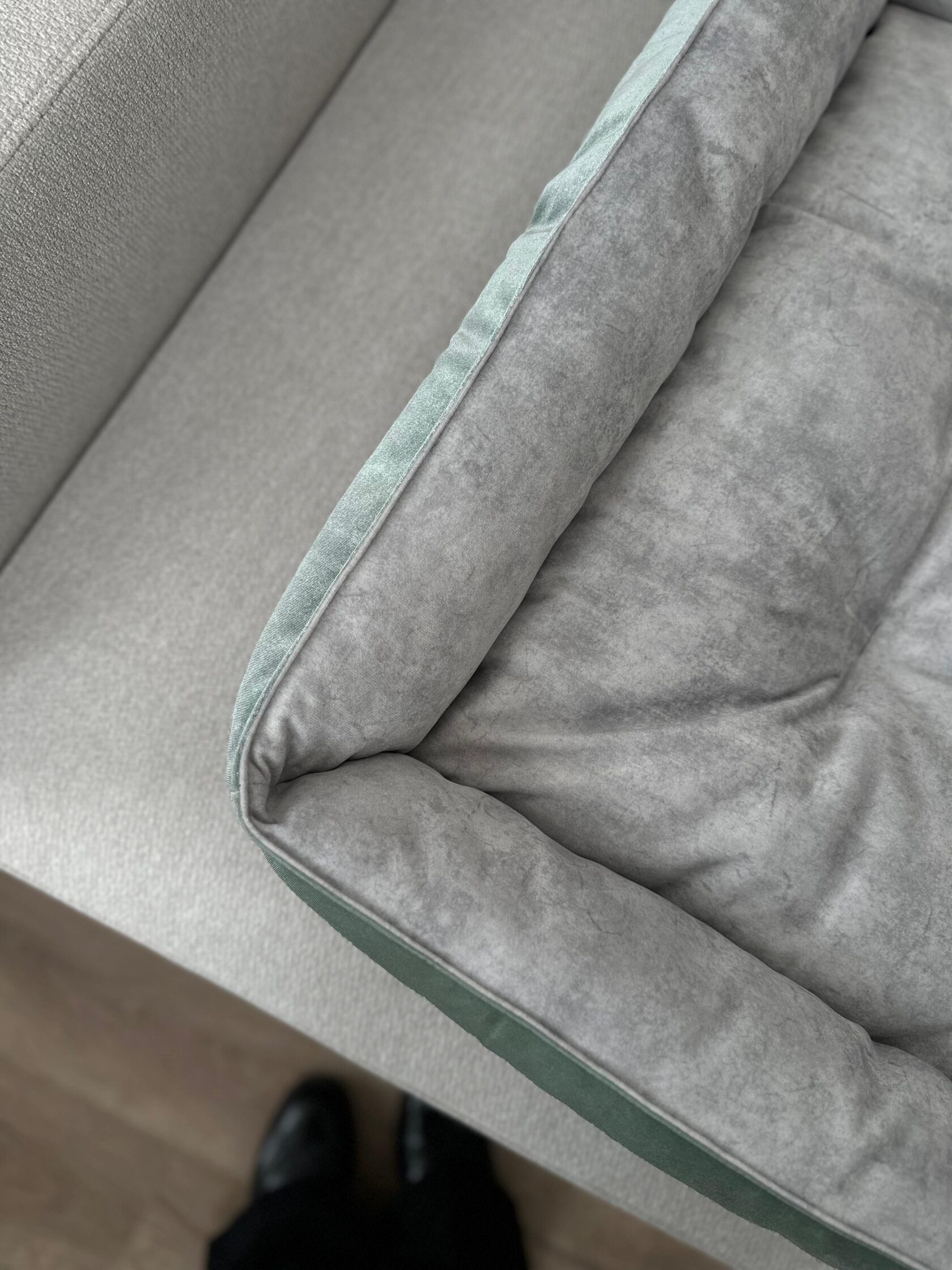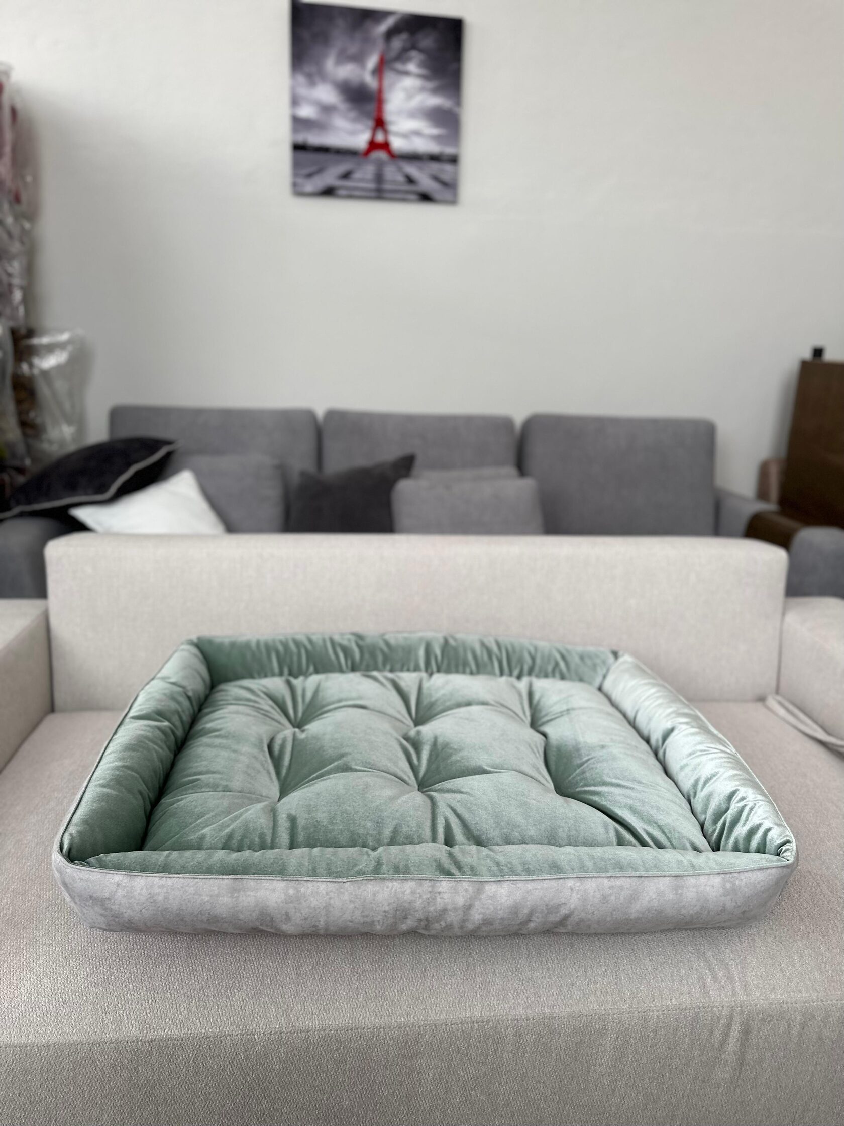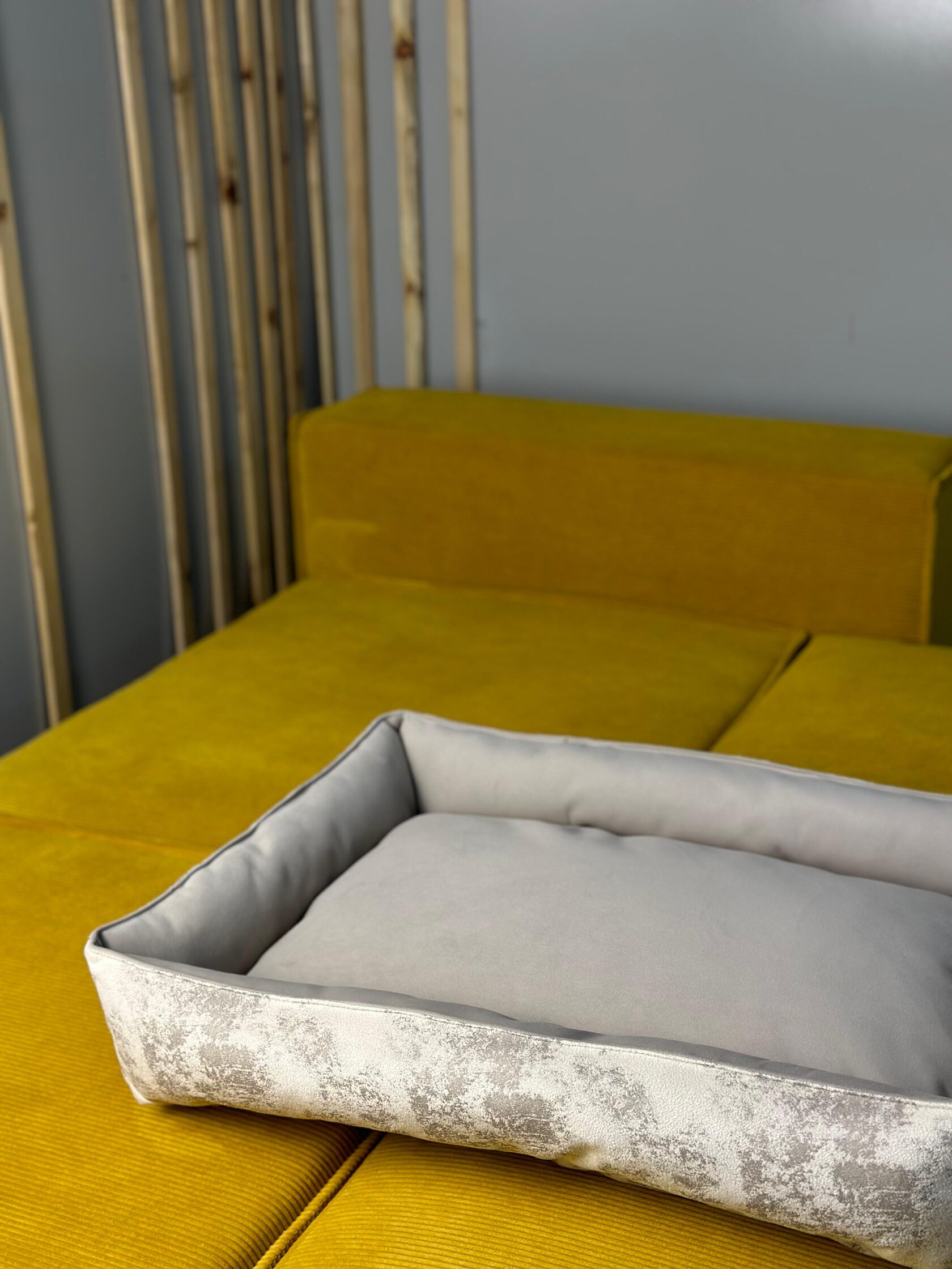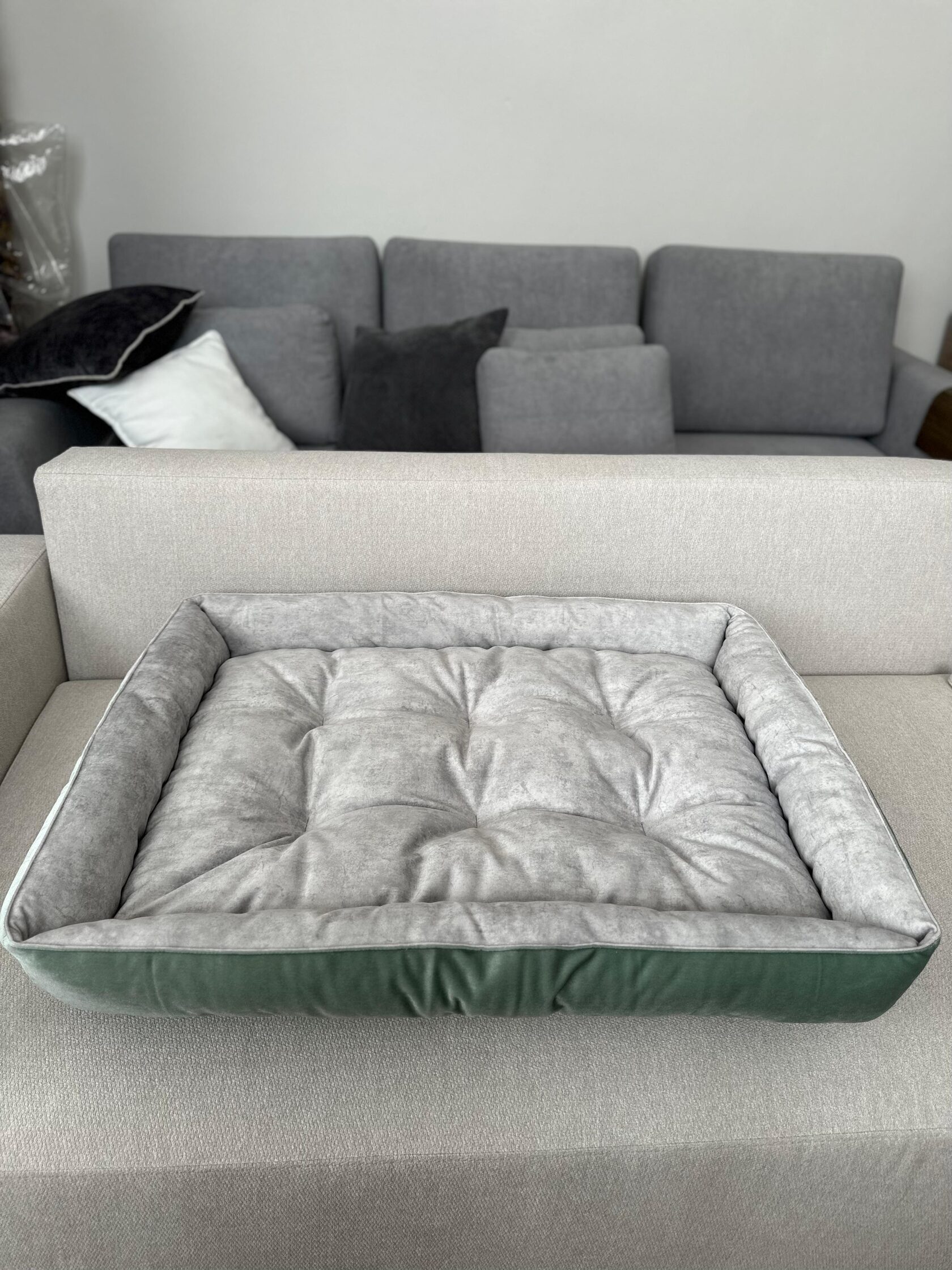 Размер лежанки с бортиком 57*67 спальное место 40*50 Лежанка из мебельной ткани высокого качества. Этот размер подойдёт собакам средних и крупных пород.
